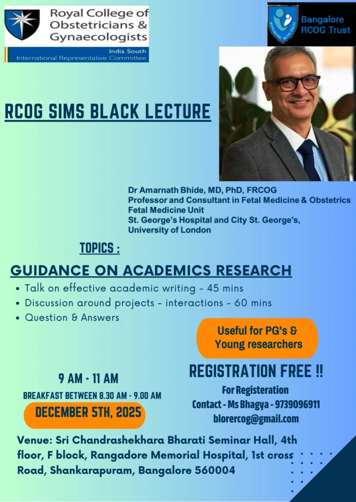 She is a National Expert on diabetes and pregnancy. She is the past President of Bangalore Society of Obstetrics & Gynaecology and President of Bangalore RCOG Trust.